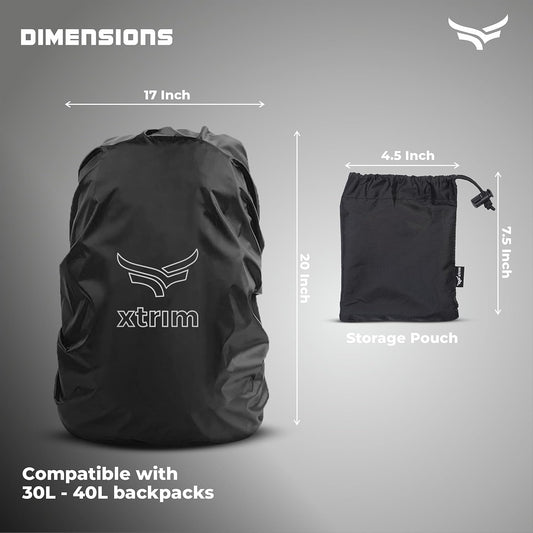 Xtrim 100% Rain & Dust Proof Protector for Standard Back Pack (Upto 40 L), Rain Cover for Bags with Storage Pouch, Seasonal Rain Cover for School Bags, Specially for Trekking & Camping (Black)
