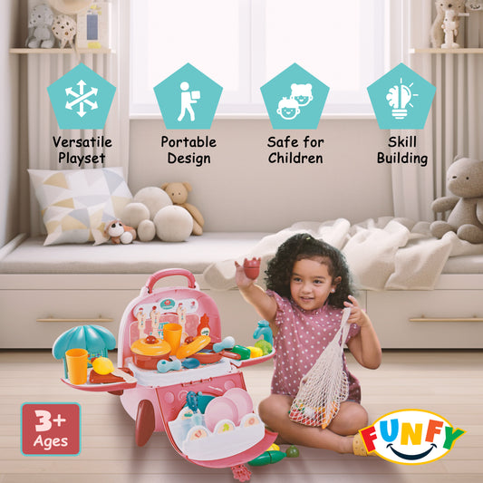 FUNFY 2-in-1 Portable Backpack Toy Kitchen Playset