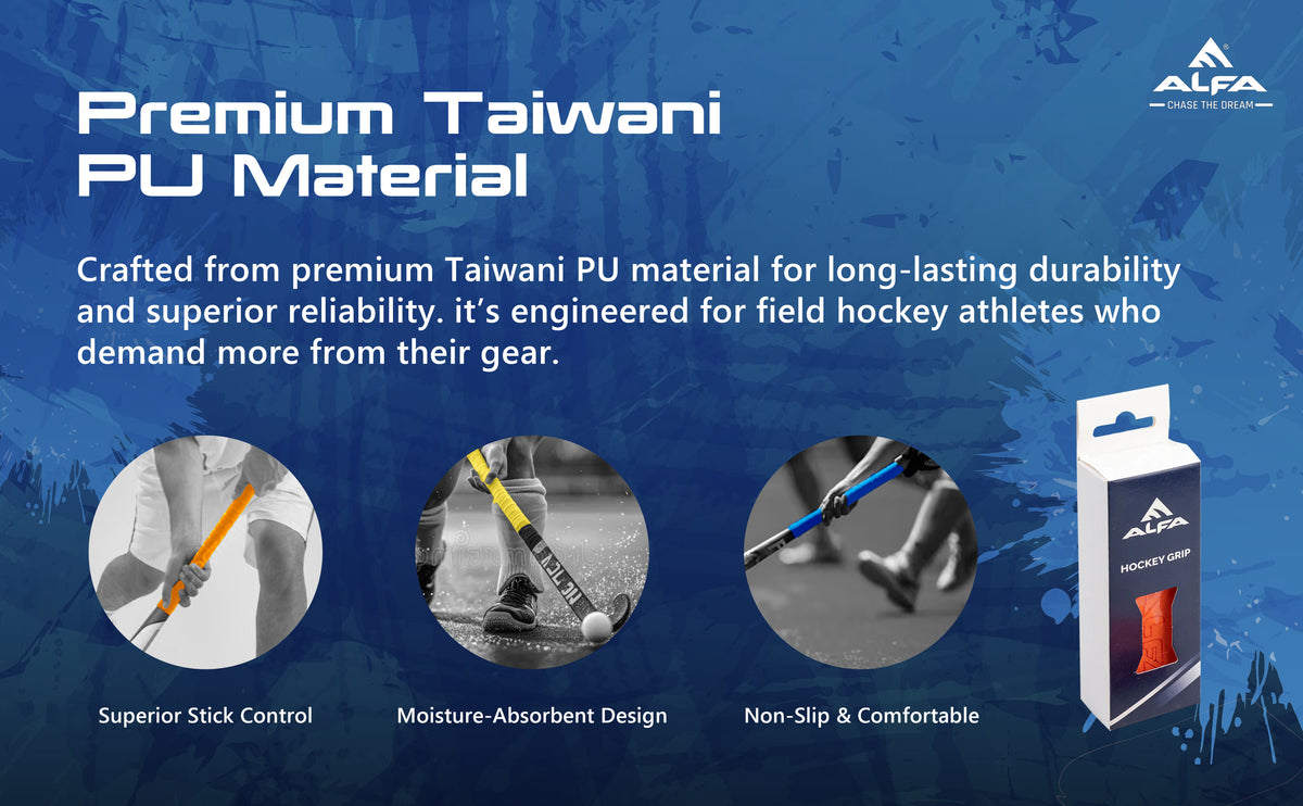 ALFA Taiwani PU Field Hockey Grip | Muliticolor | Pack of 1 |Durable and Moisture-Absorbent |Enhanced Stick Control | Non-Slip Design |Superior Traction | Comfortable and Reliable | Easy to Apply.