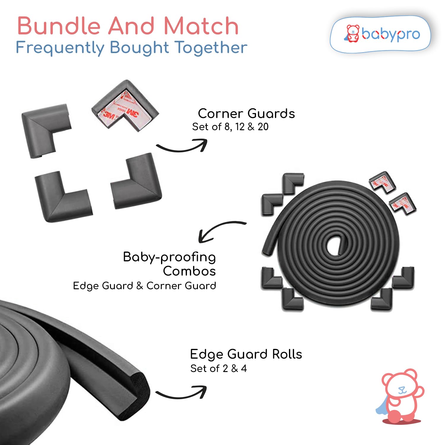 BabyPro BabyProofing Corner Guards (12mm, Pack of 12) with Strong Adhesive Tape by Certified Professional Childproofer for Covering Sharp Edges & Corners of Bed, Table & Furniture (Black)