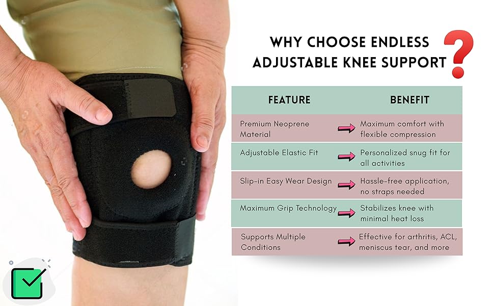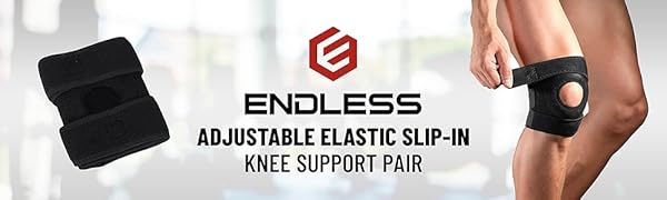 Endless Adjustable Elastic Slip-in Knee Support - Pack of 2 | Black | Material: Neoprene | For Arthritis, Meniscus Tear, ACL, Knee Pain Relief, Runner, Sport, Gym, Sports, Exercise, Workout, Cycling