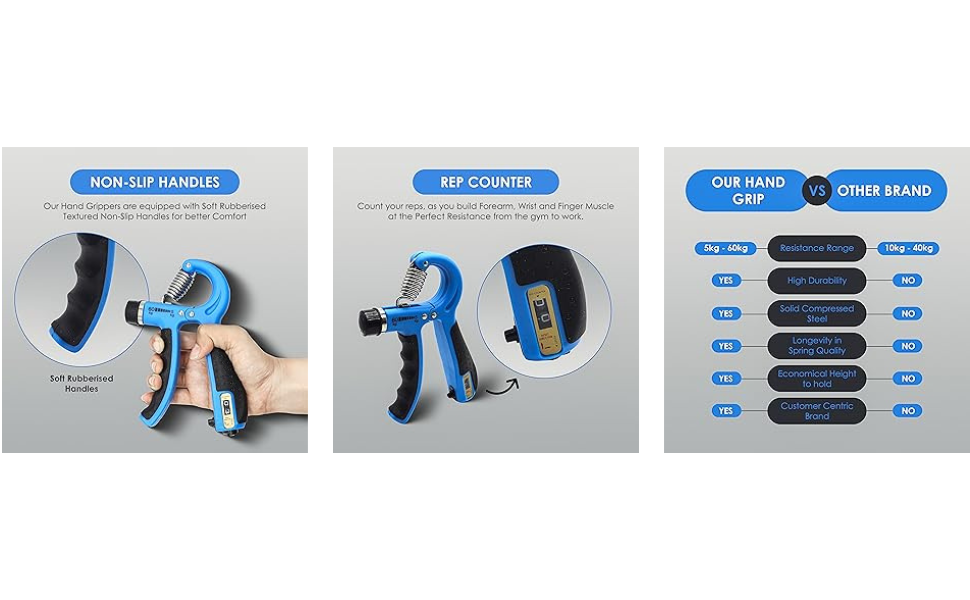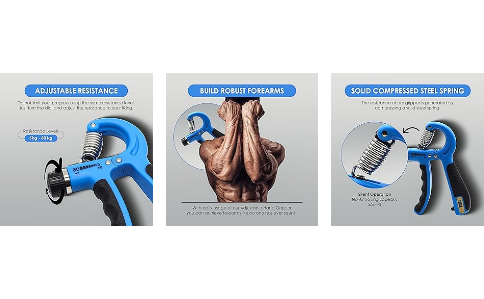 - FOREARM & FINGER EXERCISE EQUIPMENT : Hand grip strengthener is useful in forearm/wrist workout as well as in finger exercise. To gain a good grip strength, you should do hand grip workout with a low resistance on a regular basis.