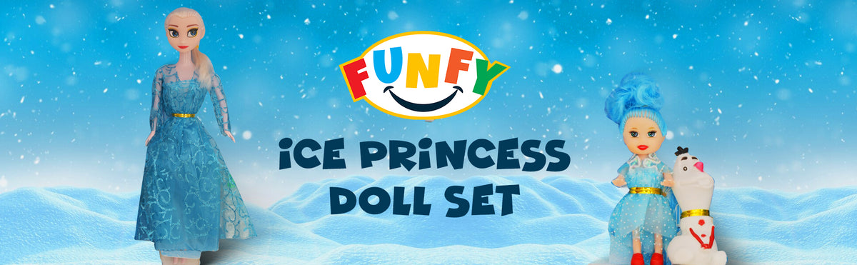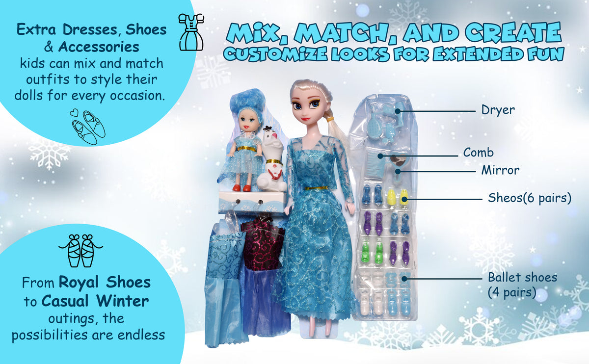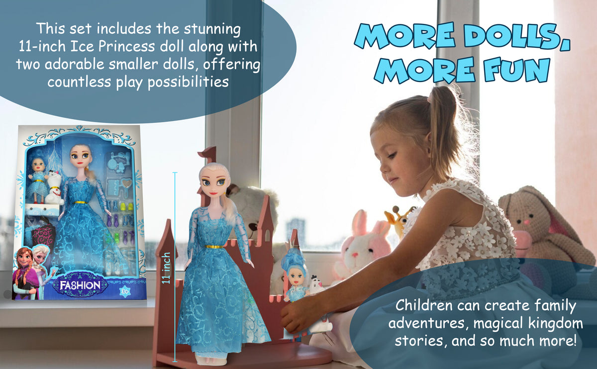 FUNFY 11" Ice Princess Doll Set | Includes Two Additional Small Dolls | Blue | Material: Plastic | Array of Accessories Including Dresses, Shoes, Comb and Mirror for Extended Play | for Girls