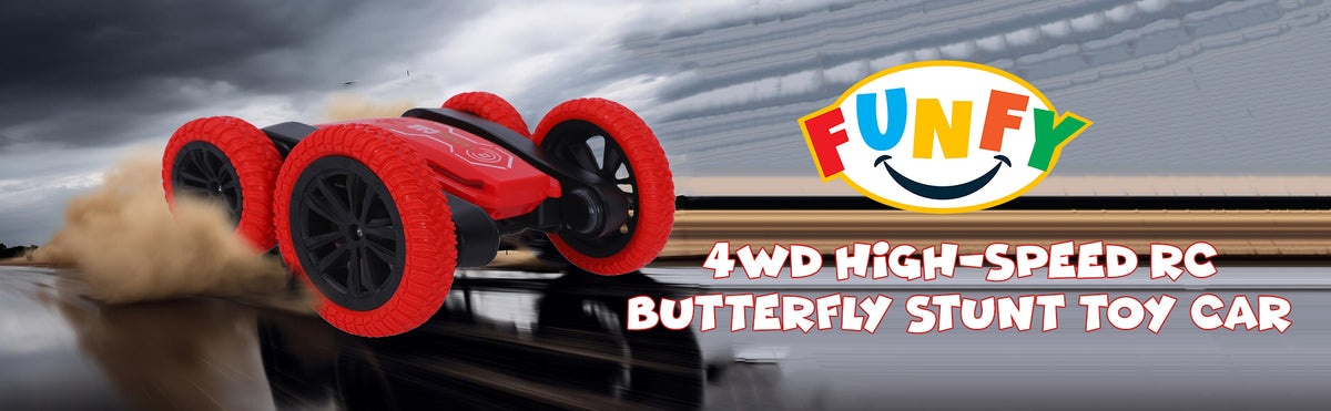 - 4WD HIGH-SPEED RC CAR: The Funfy RC car is equipped with a powerful 4-wheel drive system that ensures high-speed performance and excellent traction, providing thrilling and fast-paced racing action.