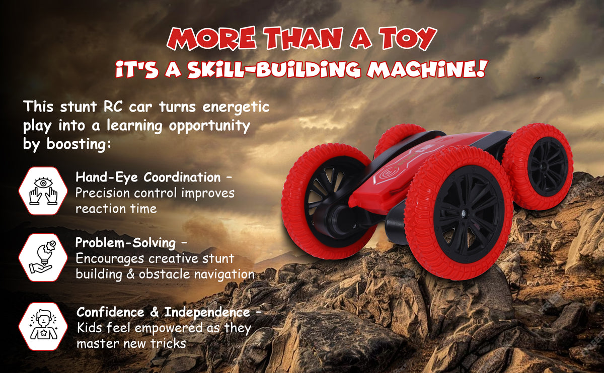 - EXCITING STUNTS: Designed to perform a range of stunts, this car brings an extra level of excitement to playtime, encouraging kids to explore and experiment with different tricks and techniques.