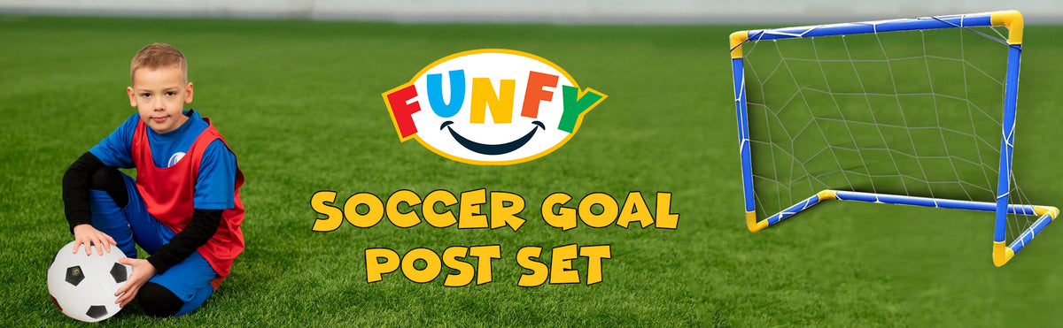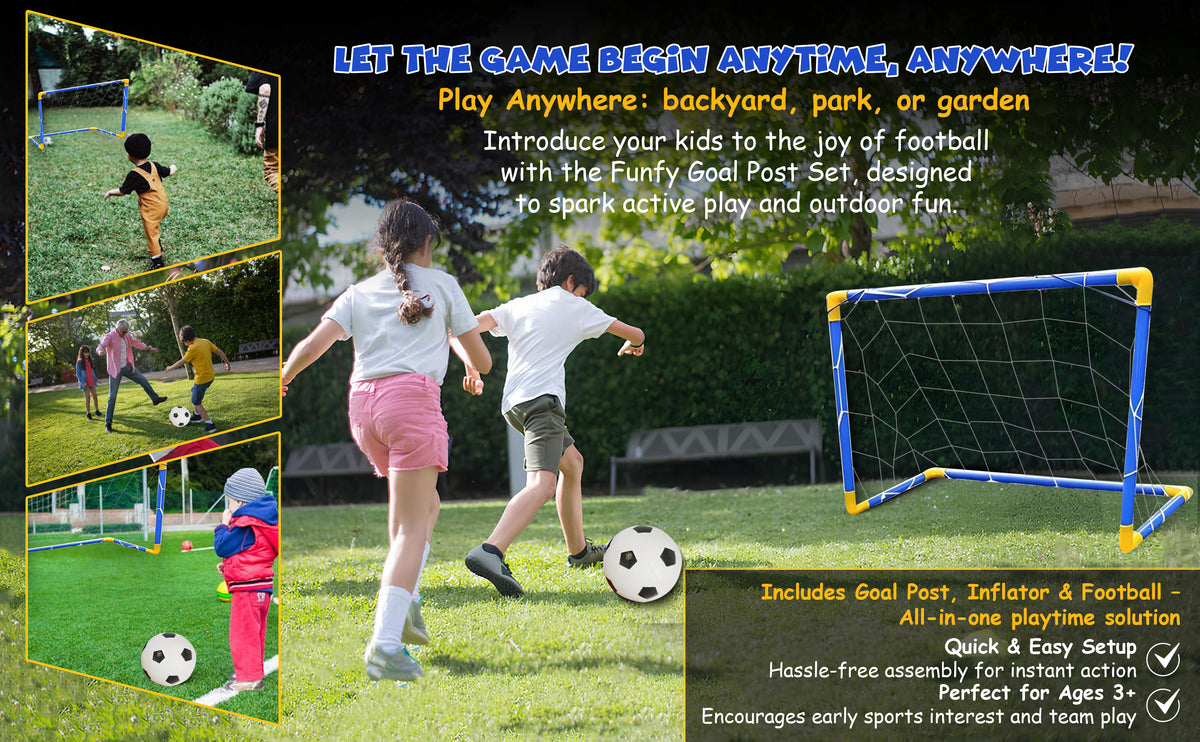 FUNFY Football/Soccer Goal Post Set | Plastic | Contains Pump, Goal Post And Football | Features 2.8 cm Diameter Pipes, 3 cm Diameter Joints For Sturdy Construction | For Kids