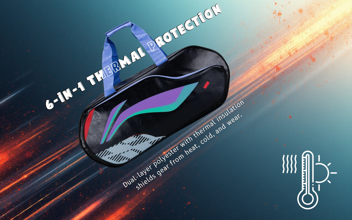 - 6-in-1 Thermal Protection & Superior Durability: Built with dual-layer polyester and advanced thermal insulation, this bag safeguards your badminton rackets and other equipment from extreme temperatures and wear and tear.