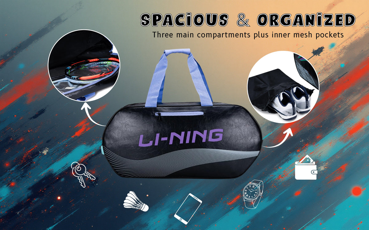 - Spacious Storage with Thoughtful Organization: Features 3 large compartments for rackets, clothing & accessories, along with two inner mesh pockets for smaller essentials like shuttlecocks, grips or keys, ensuring everything stay within easy reach.