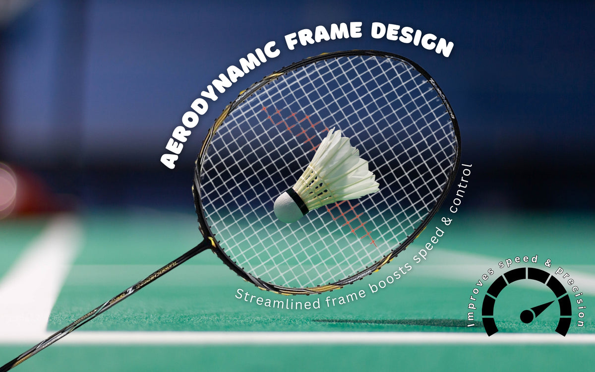 - Aerodynamic Frame Design: The trapezoidal frame construction enhances aerodynamic efficiency, enabling faster swing speeds and improved shot precision.