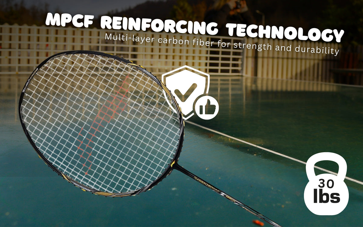 - MPCF Reinforcing Technology: This multi-layer carbon fiber reinforcement enhances the racket's durability and strength, extending its lifespan under high-tension stringing.