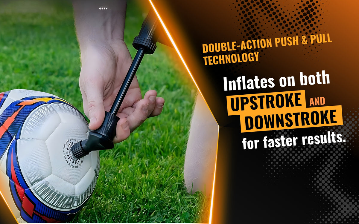 - Double Action Push and Pull Technology: This ball pump utilizes a double-action mechanism, allowing it to pump air during both the upstroke and downstroke, making the inflation process quicker and more efficient.
