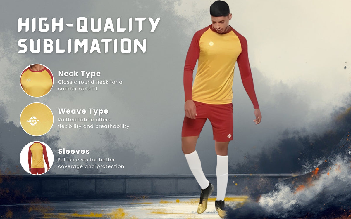 Nivia Destroyer Football Jersey Set for Men Full Sleeve (Large, Yellow/Red) | 5088L4