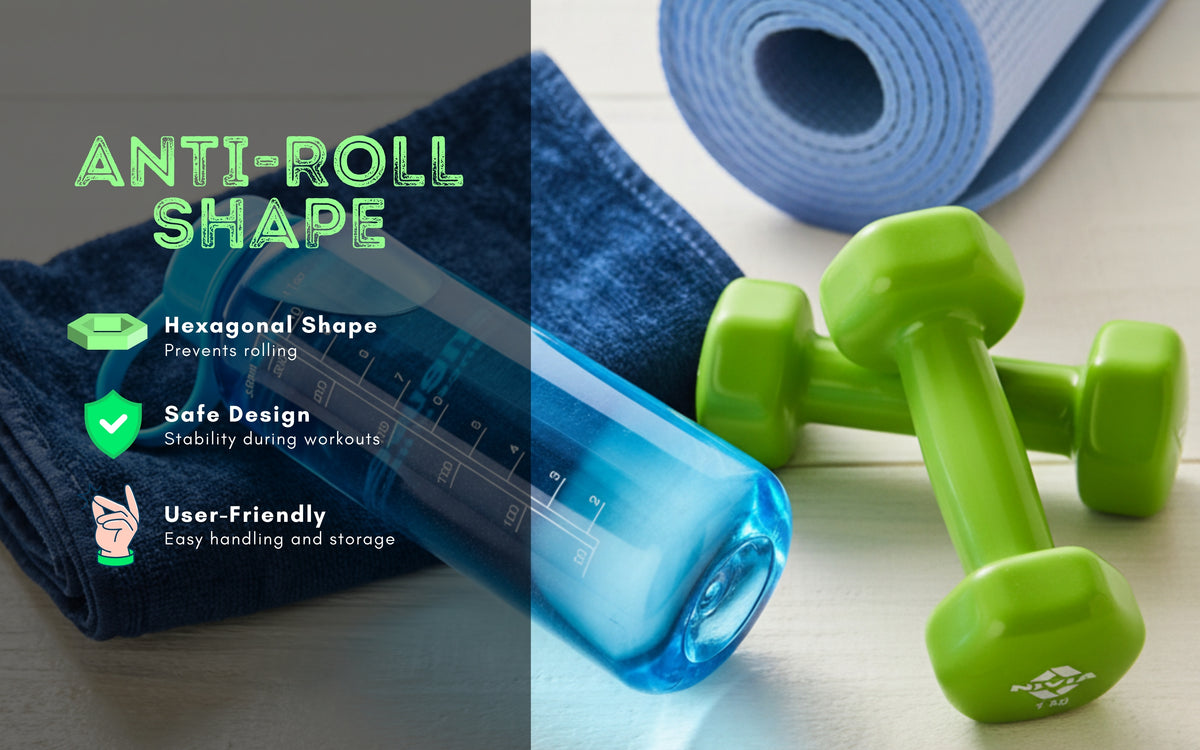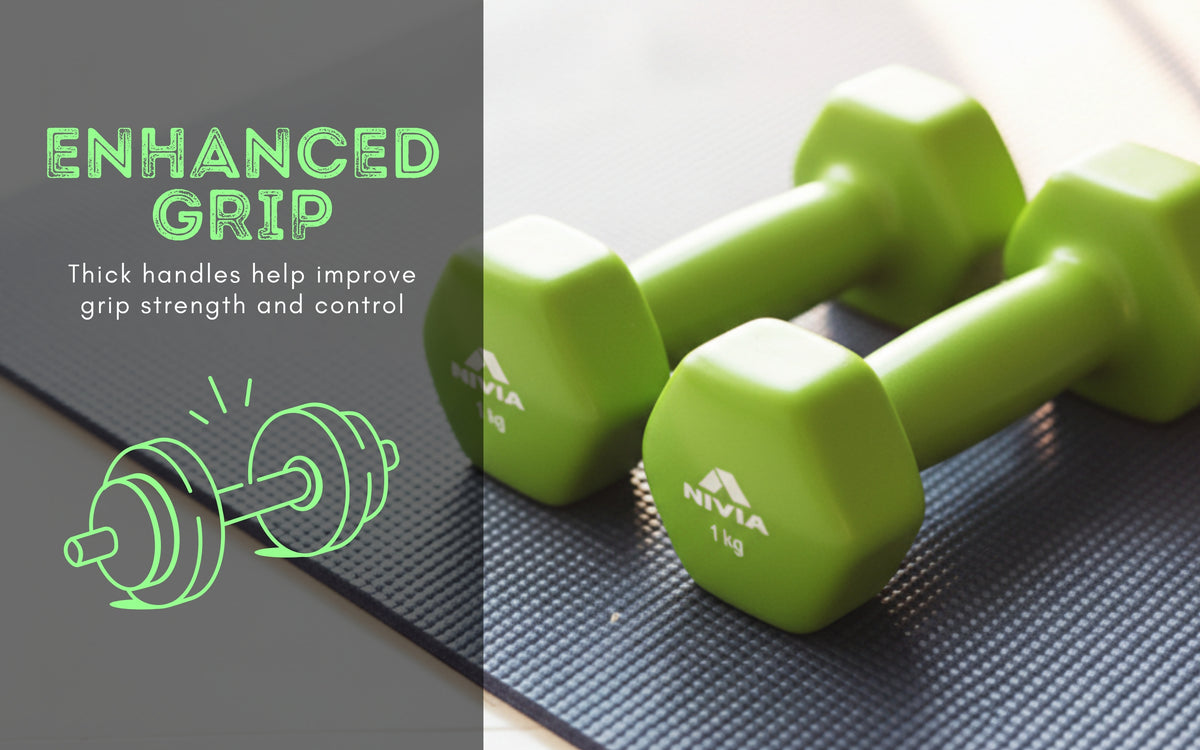 - Hexagonal design resists rolling, while the thick handles enhance and strengthen grip