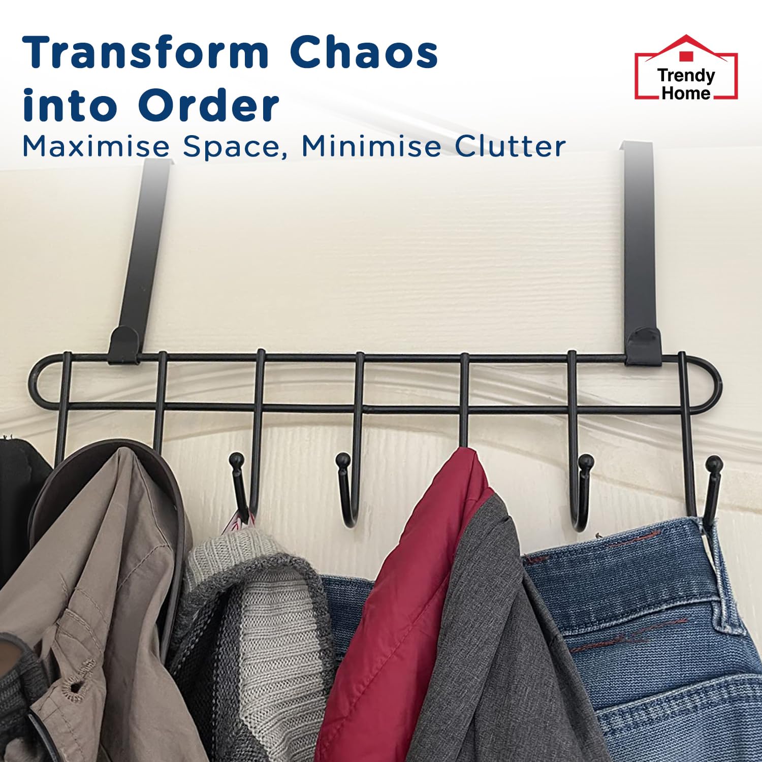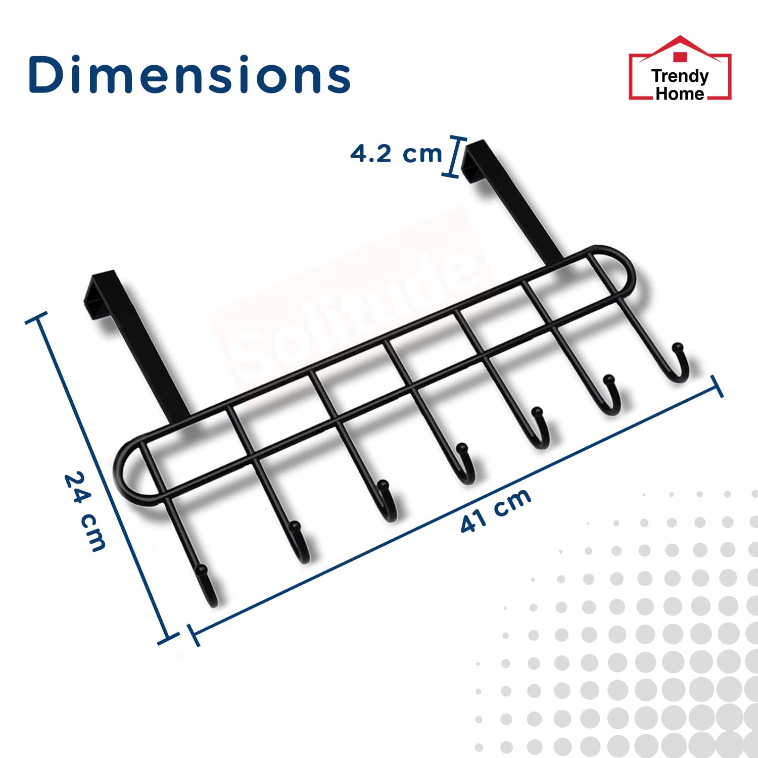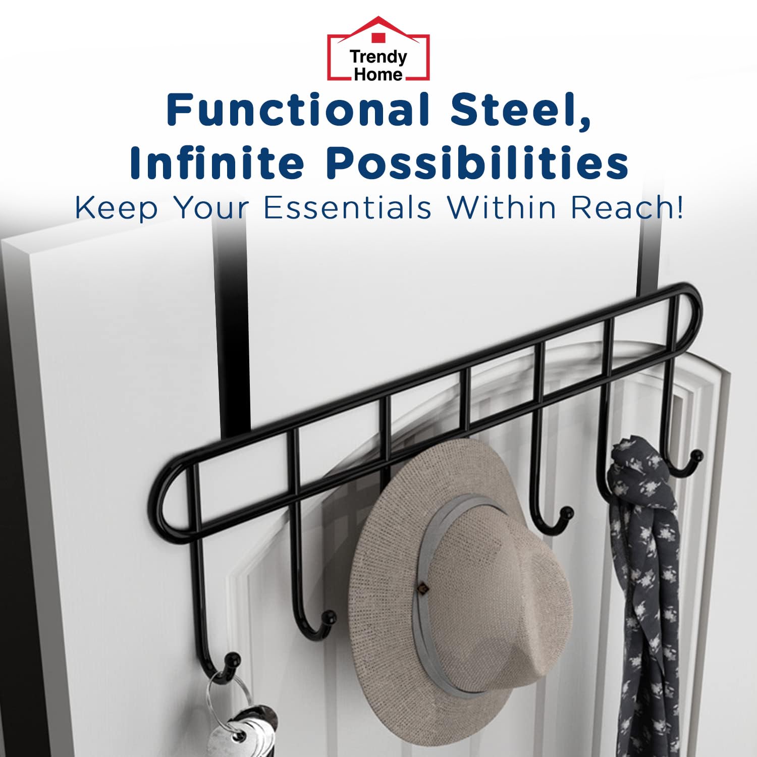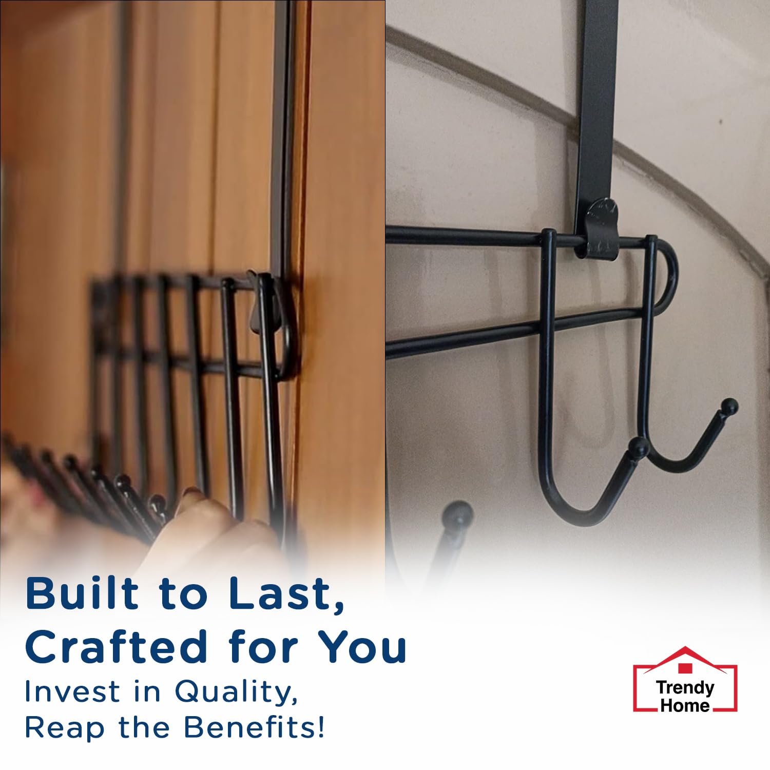 Trendy Home Over-The-Door Hook (Pack of 2) Heavy-Duty Over Door Hanger Holder for Coat Hanging, Robe, Hat, Clothes, Towels, Bathroom Organiser, Towel Rack, 7 Hooks, Matte Black