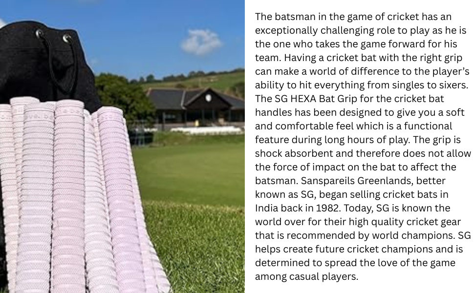 SG Hexa Premium Anti-Slip Cricket Bat Grip | Color: White | Pack of 1 | Grip for Enhanced Control