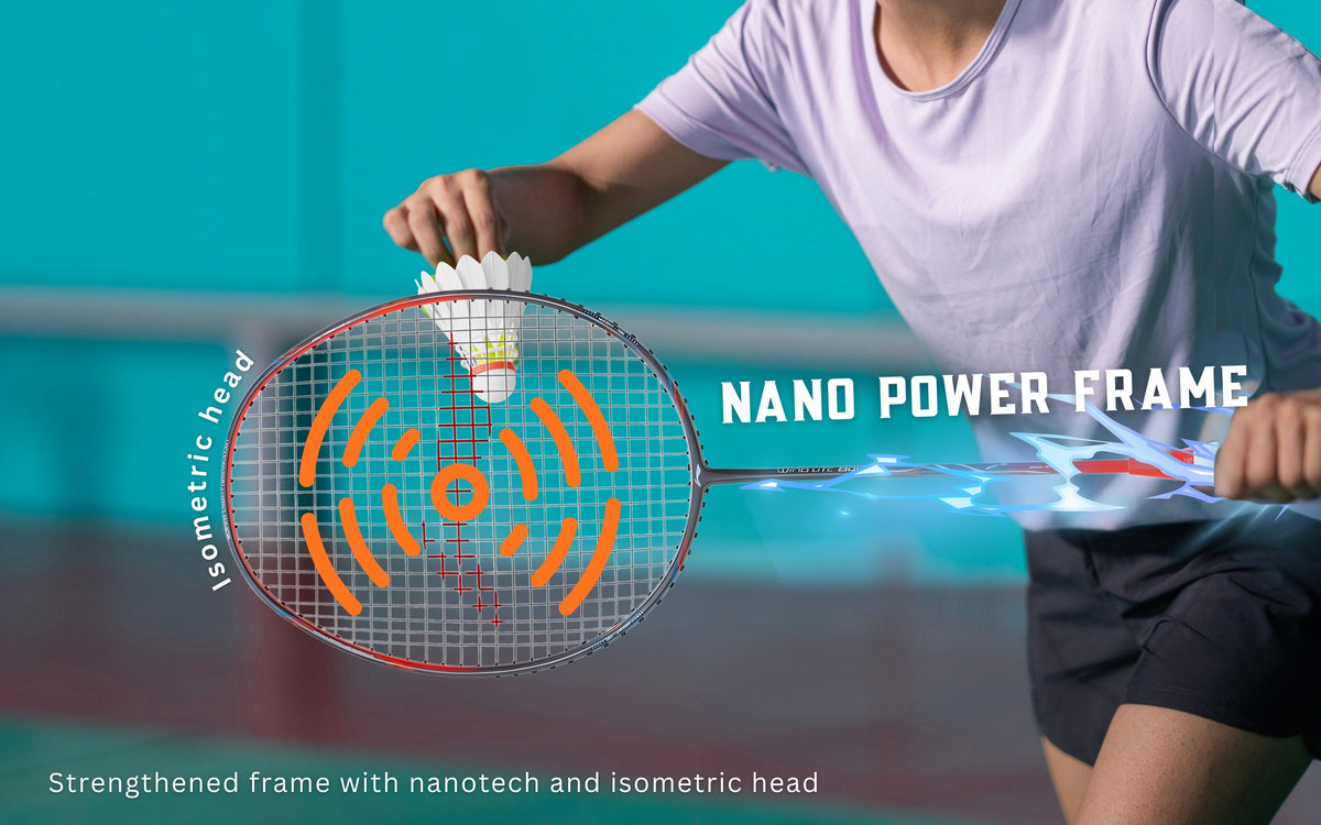 - Nano power frame - A cutting-edge system designed with Nanotechnology and an Isometric head shape that enhances frame strength and durability that adds a spark to your unique playing style.