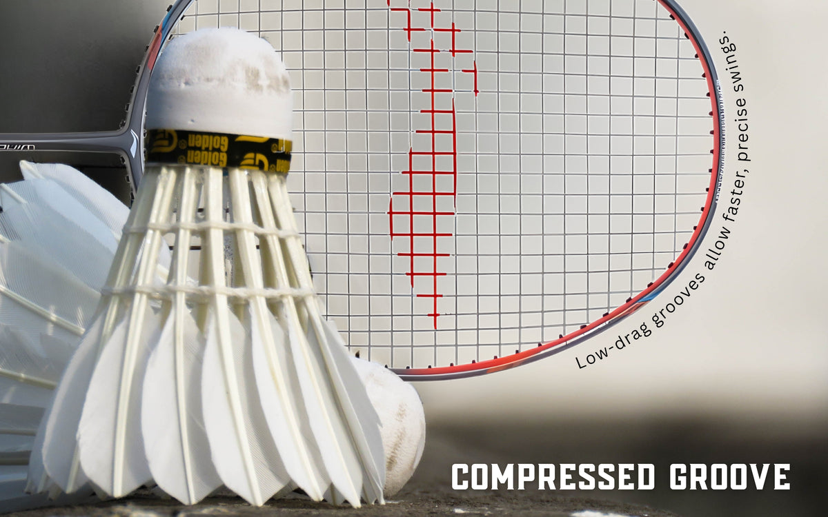 - Compressed groove - Along with the frame structure the racket grooves too are designed to have a low drag coefficient for speedy swings and easy rotation giving you precise control over every movement.