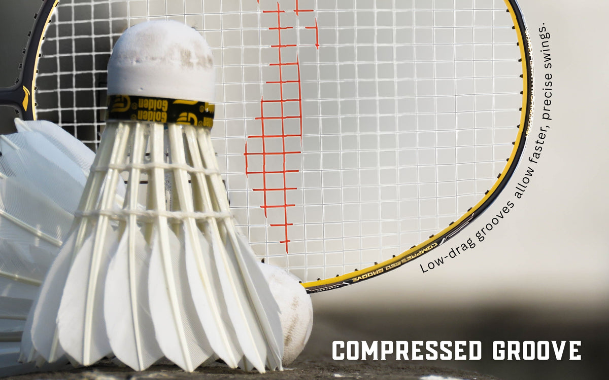 - Compressed groove - Along with the frame structure the racket grooves too are designed to have a low drag coefficient for speedy swings and easy rotation giving you precise control over every movement.