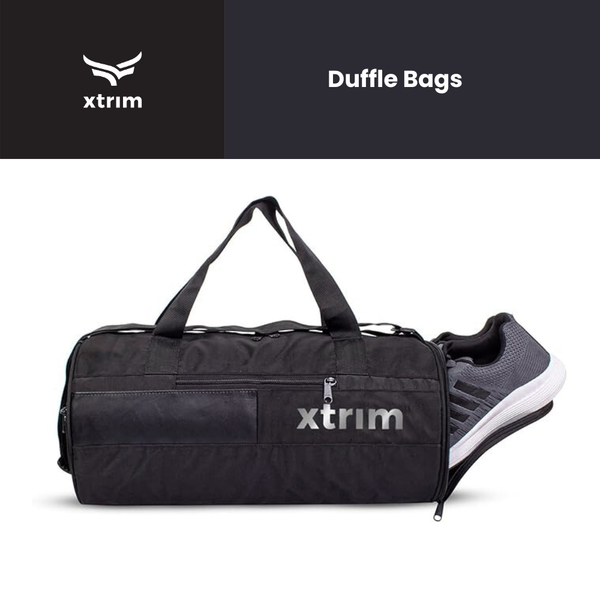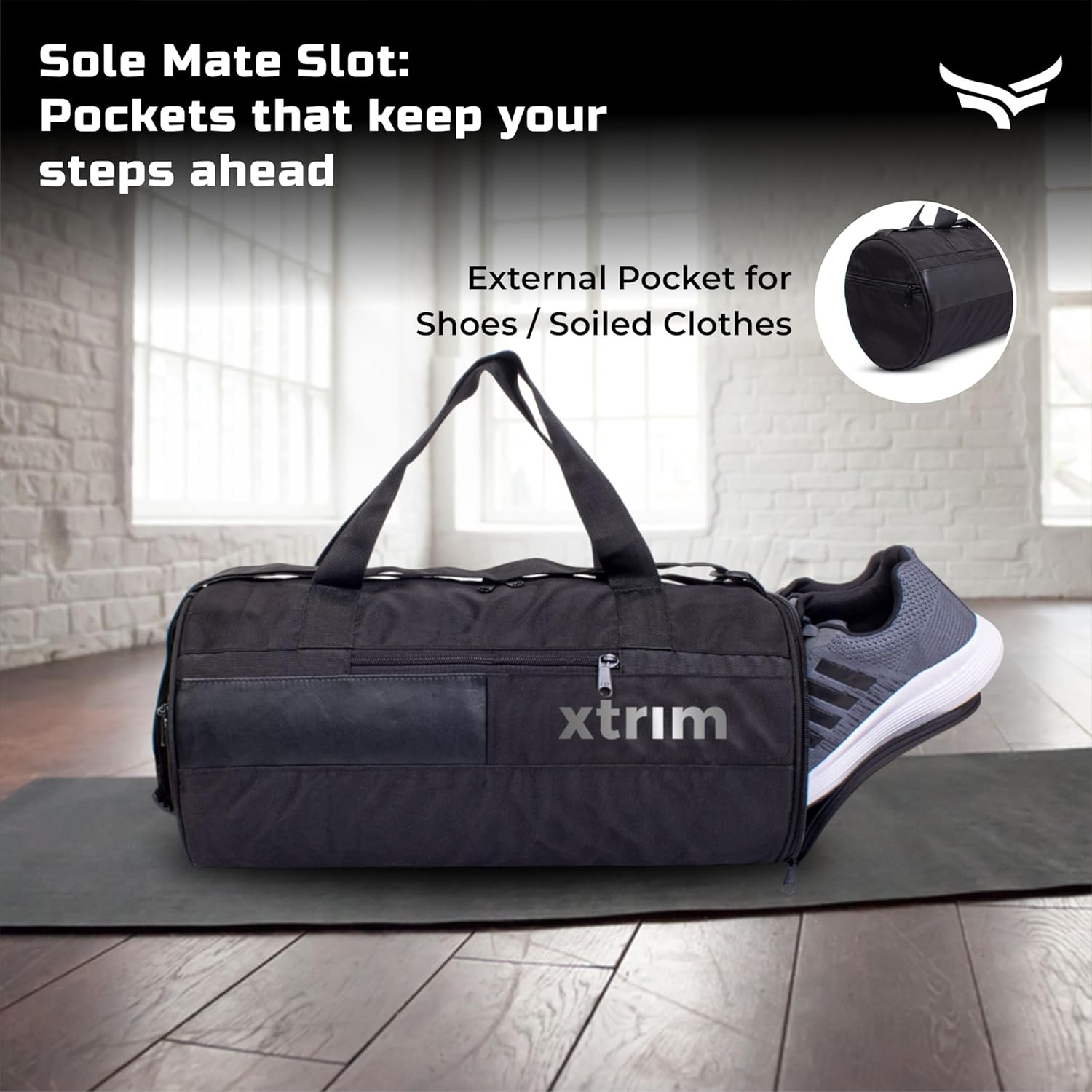 Xtrim Duffle Bags, Gym Bags for Men and Women, Mini Sports Bag, Kit Bag, Small Travel Bag for Men, Duffle Bag for Gym with Shoe Compartment (Black, 35L)