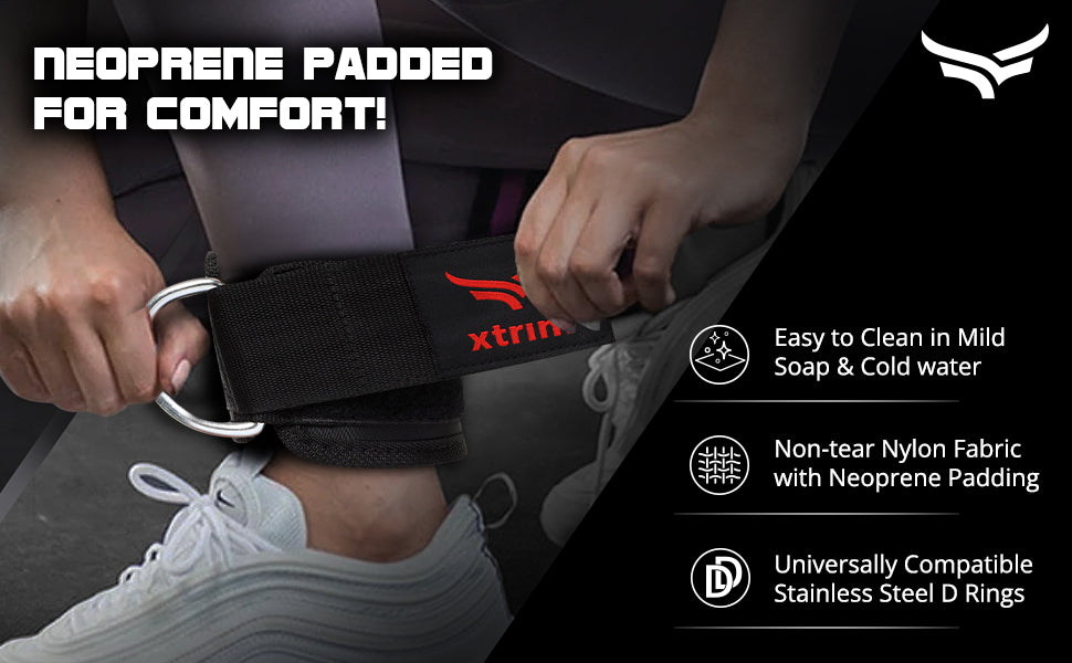 - High-Quality & Durable Material: Xtrim Ankle Straps come with breathable neoprene padding that prevents wetness due to sweating during workouts, ensuring their strength and durability