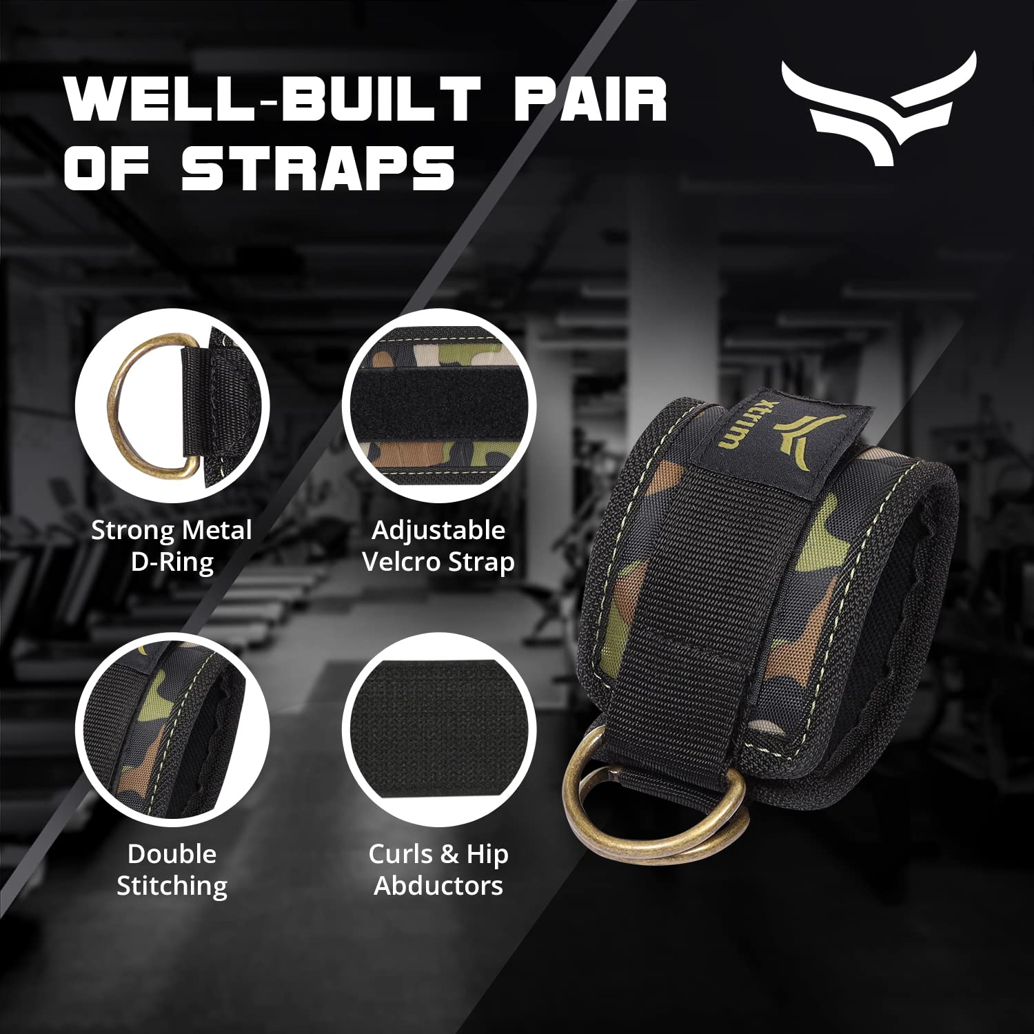 XTRIM Durafit Unisex Stylish Ankle Straps with Metal D-Rings for Cable Machine, Kickbacks and Glutes Workouts, Adjustable Ankle Straps, Curls & Hip Abductors with Padded Neoprene Support
