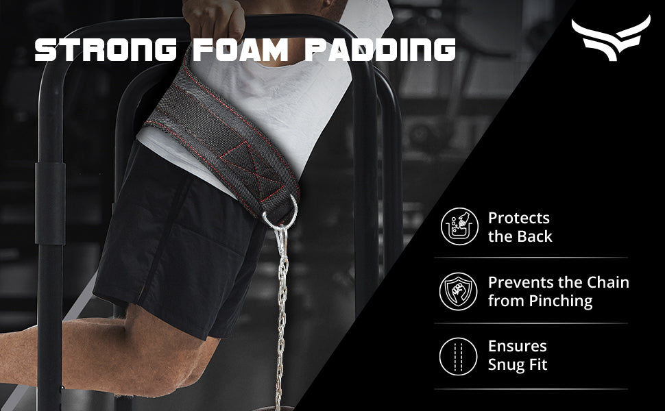 - CONTOURED DESIGN: The dipping belt offers a contoured design that keeps your lower back in the right place ensuring that the belt will not slip down your hips as the weight increases