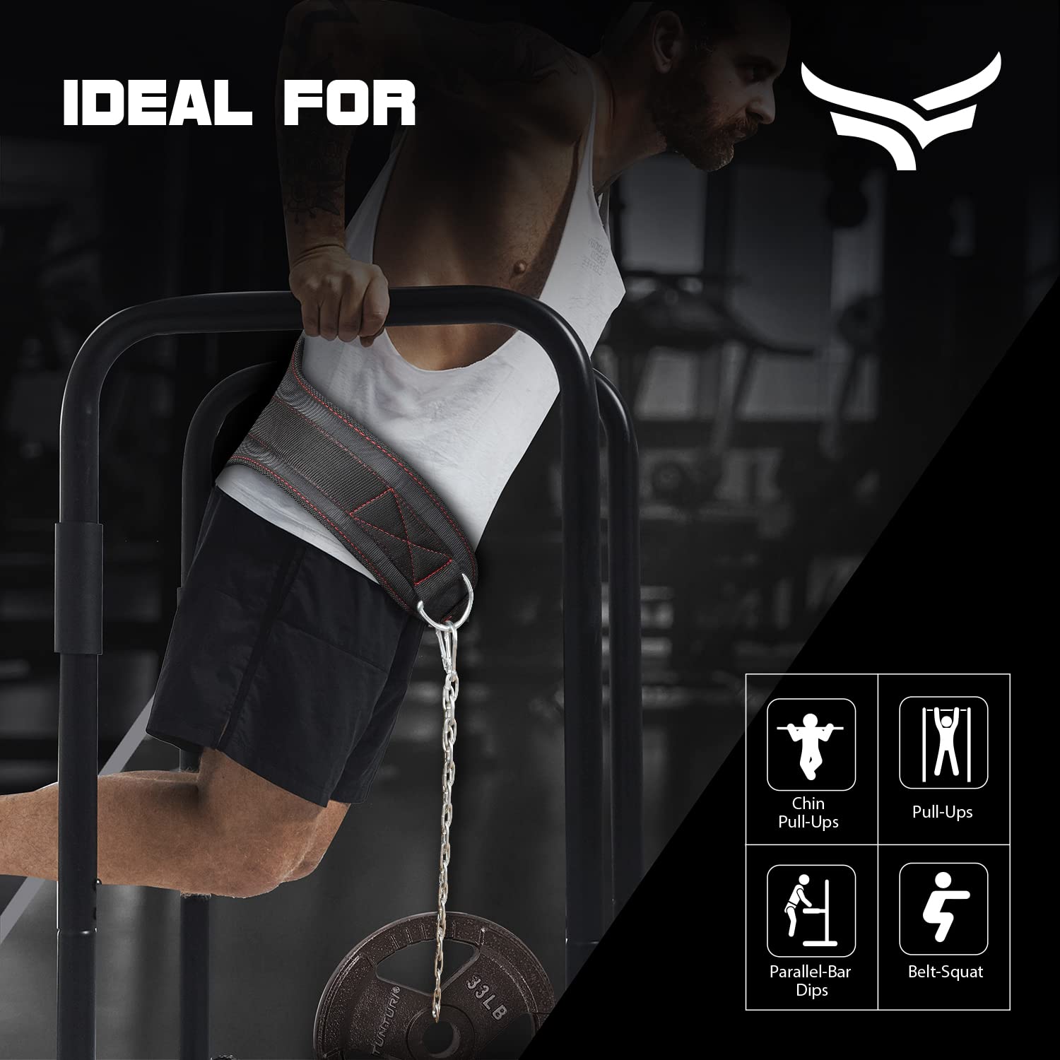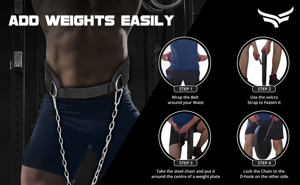 - USAGE: Perfectly assists your lower back in weighted triceps dips, chin pull-ups, box squats, and more.