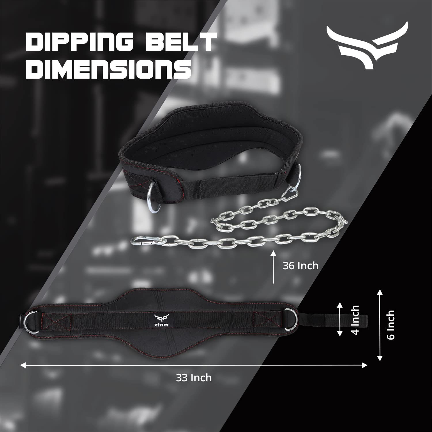 - DIMENSIONS: The dipping belt has a width of 8 inches and also features a heavy-duty 36-inch long steel chain that can carry an extreme amount of weight without getting cracked